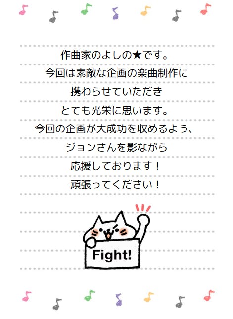 ⑥オリジナル麻雀ソングの歌詞カード(ジョン手書き)