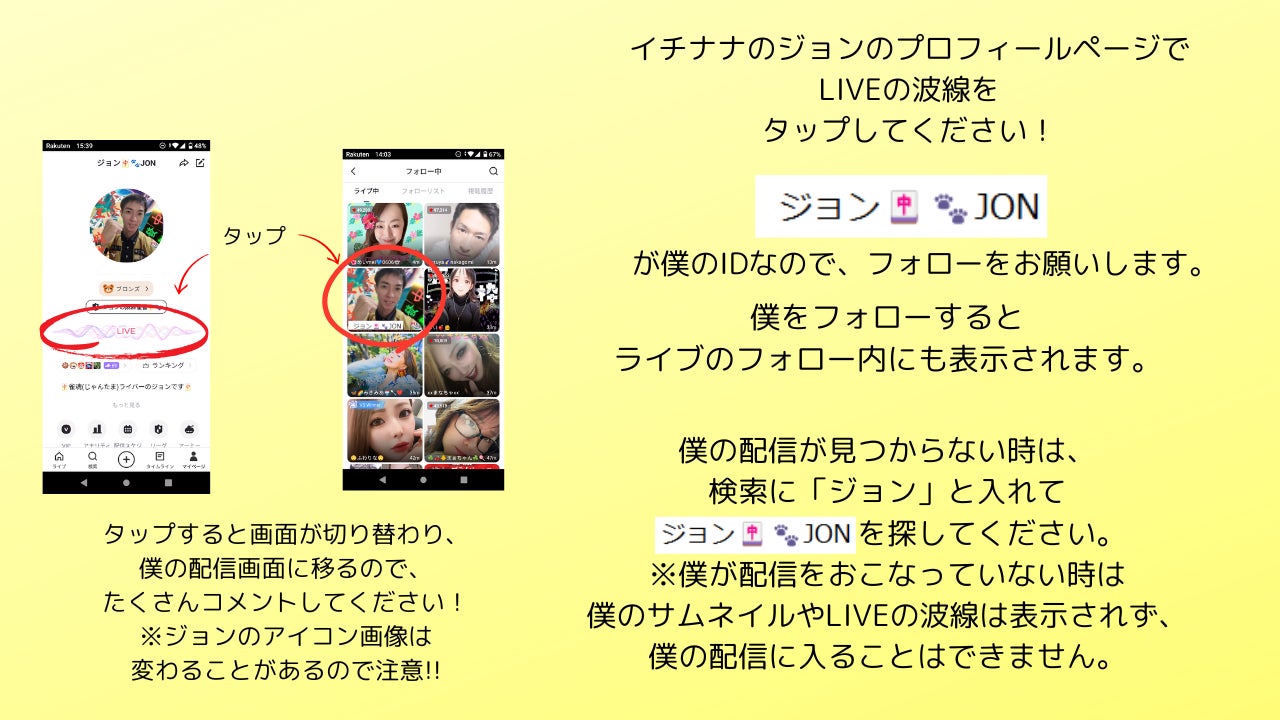 ジョンフェスは17LIVEのこちらのジョンのプロフィールページから入れます。(参加方法の詳細はよくある質問をご参照ください)