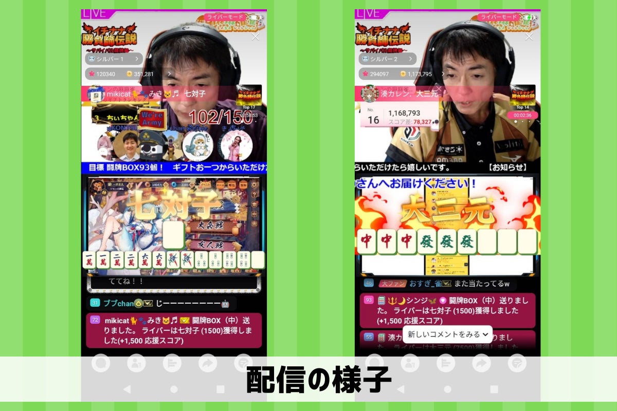 イチナナでは、「雀魂(じゃんたま)」というオンライン麻雀一本だけを毎日3時間魂を込めて配信しています。