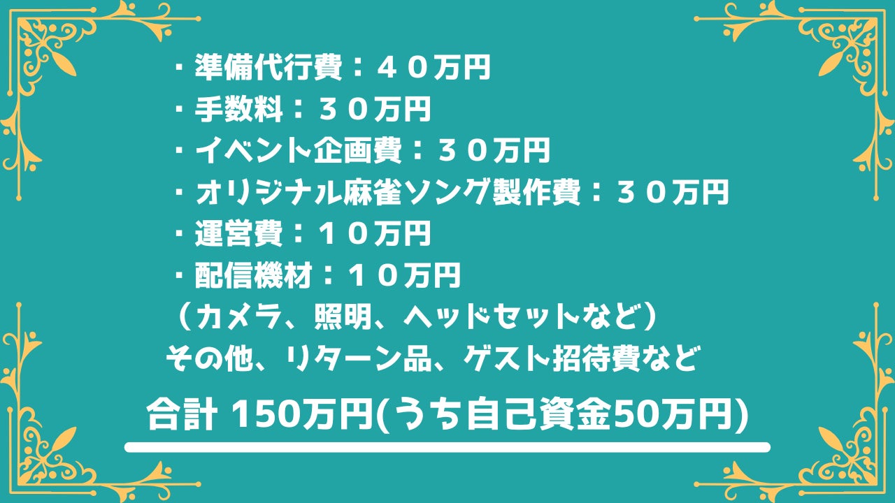 みなさまからいただいたご支援が一次目標金額を超えた場合は、今後の配信活動や麻雀業界の普及・拡大に充てさせていただきます。