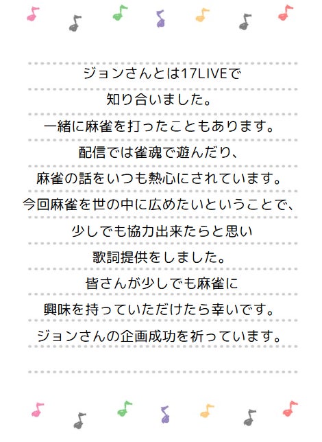 オリジナル麻雀ソングの歌詞カードをメールでお送りします。