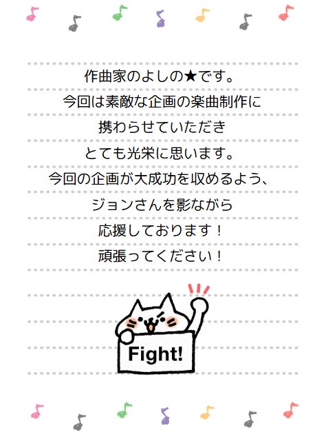 ジョン直筆の感謝のお手紙をお送りします。
