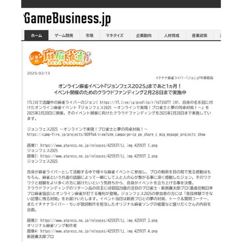 Game Business 様よりご掲載をいただきました!
