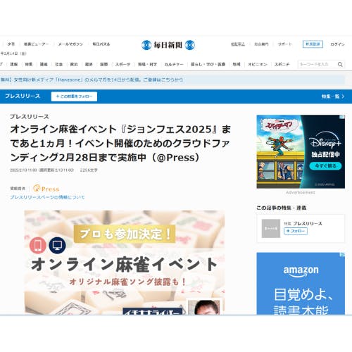 今回のクラウドファンディングにおいて、毎日新聞様よりご掲載をいただきました!