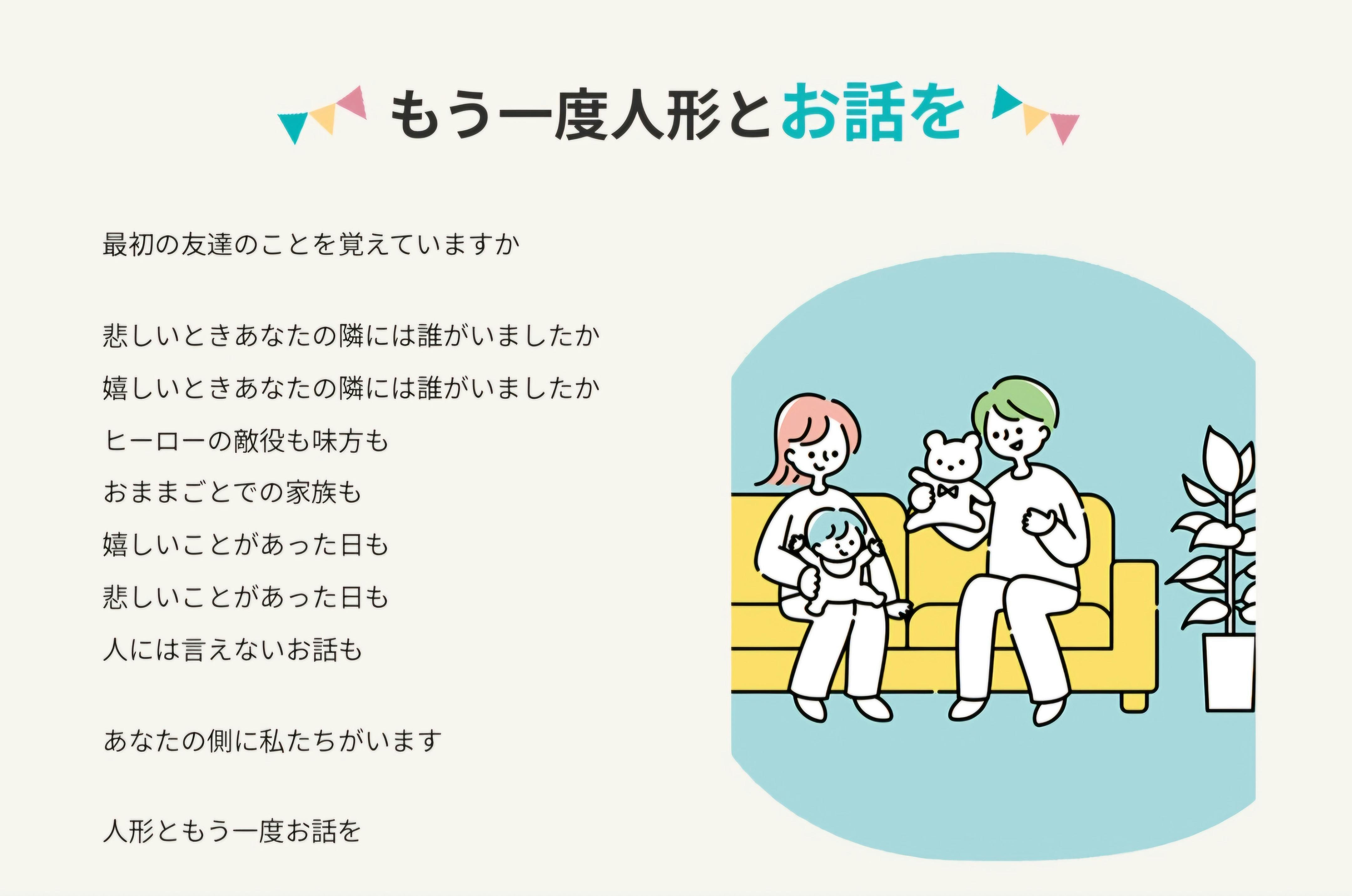 Zoomを使いますのでイメージとしてはテレビで見ていたような人形が自分だけにお話かけてくれる感覚です。