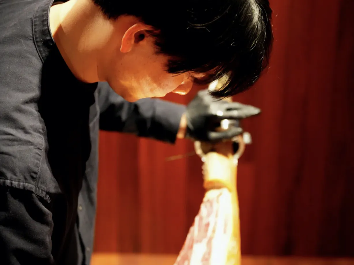 36-48ヶ月という長期の熟成期間を経て、約14kgあった肉は8kgにまで凝縮されていきます。この過程で、表面には自然の白カビが現れ、独特の風味が醸成されていきます。職人たちは毎日、温度や湿度を管理し、必要に応じてイベリコ豚のラードを塗るなど、細やかなケアを続けます。