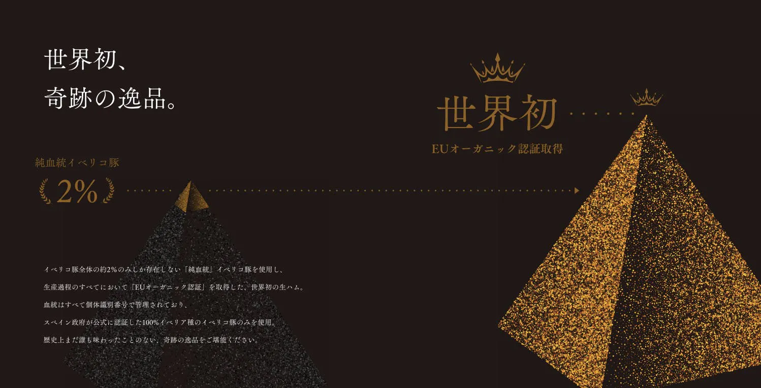 世界でわずか2%しか存在しない純血統イベリコ豚のみを使用し、スペインで初めて全工程でのEUオーガニック認証を取得した『BLACK TAG』。
