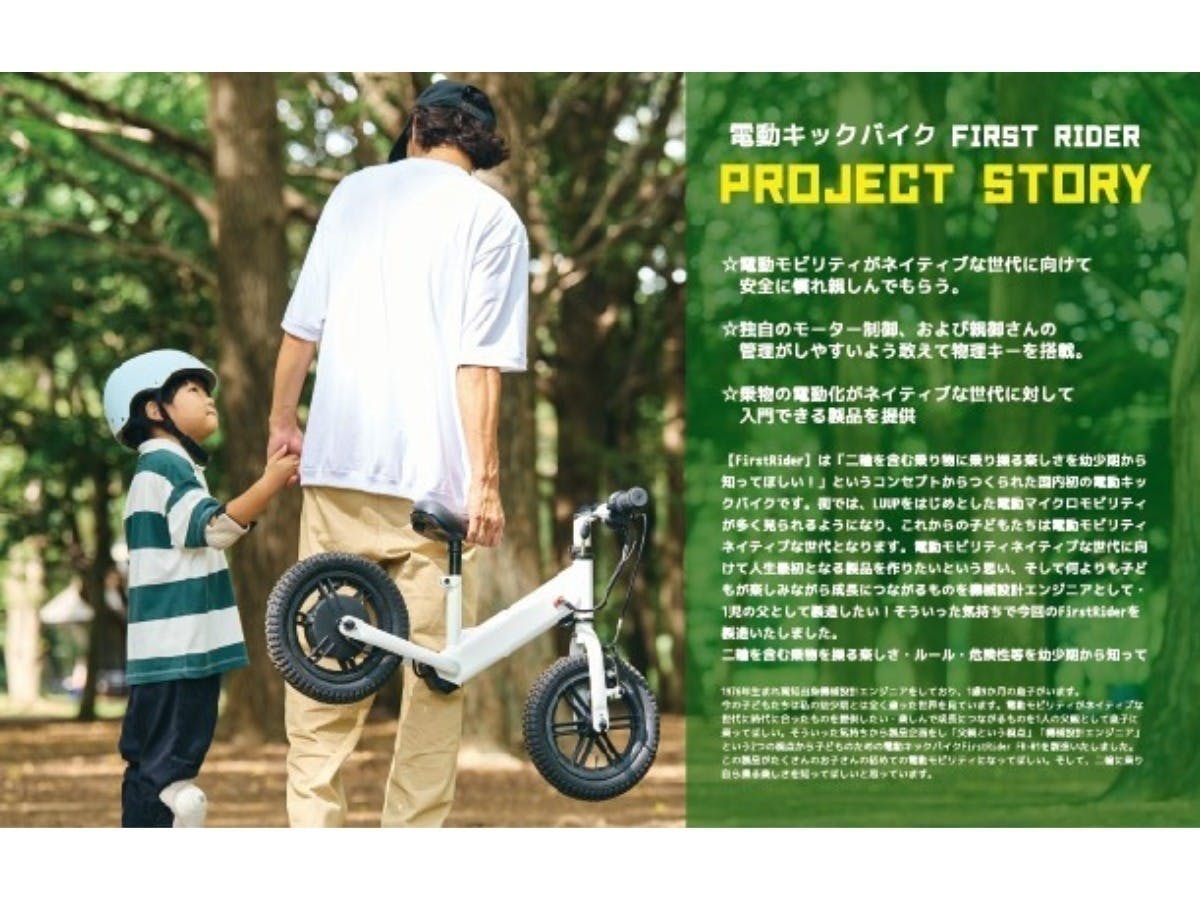 ・『FirstRider』は、お子様が電動モビリティの基礎を楽しく、そして親御様の管理下で安全に体験できる「最初の一台」となるべく開発されました。