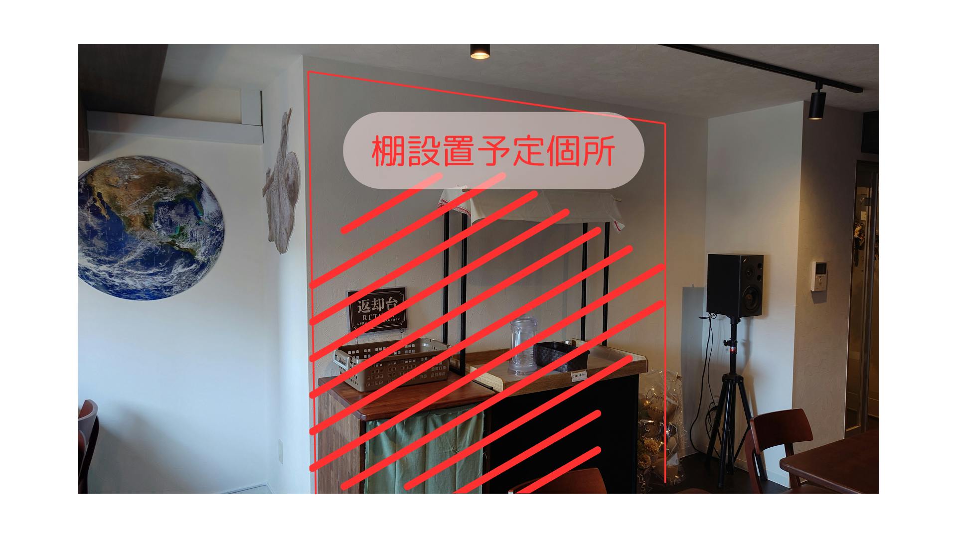 現在すでに営業しているカフェですが、客席のお客様の邪魔にならないように商品棚を設置するスペースがあります。棚を設置して在庫を仕入れればすぐにでも販売を行える状態ではあります。