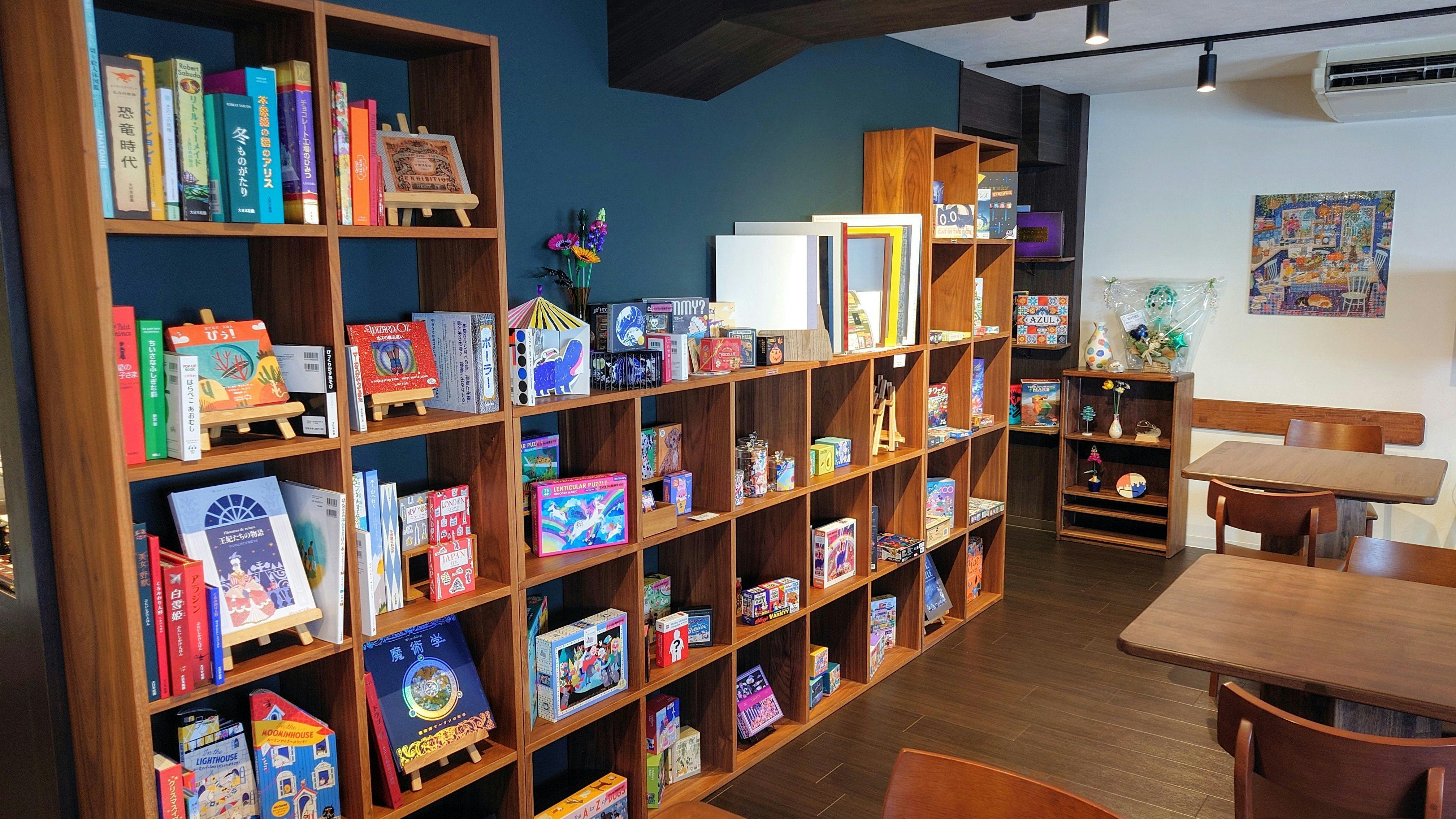 店内で遊べる仕掛け絵本、ジグソーパズル、ボードゲームの数々です!
