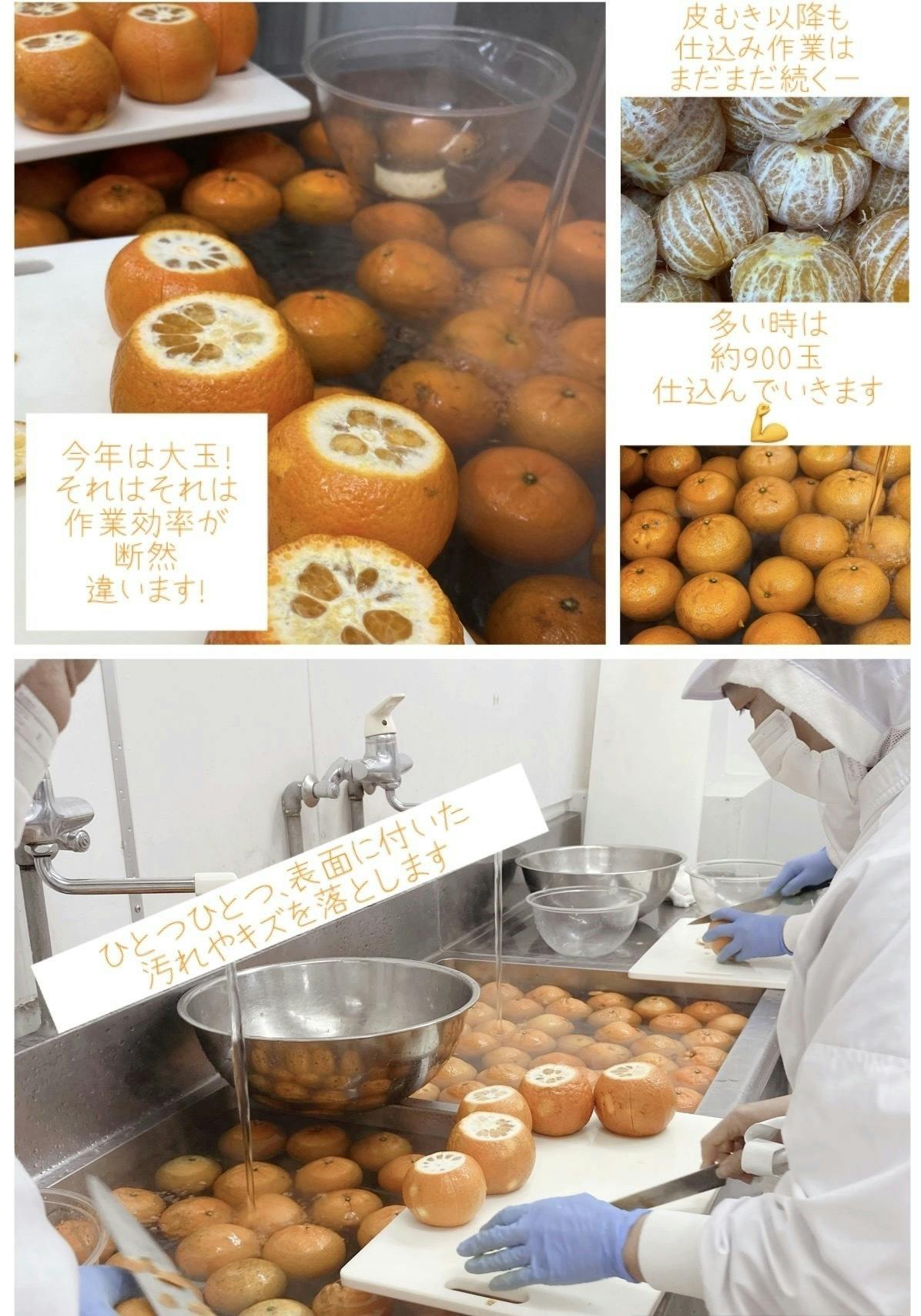 現在製造中の商品は奄美大島で育ったたんかん、先月までは香川県で育った小原紅早生みかん。