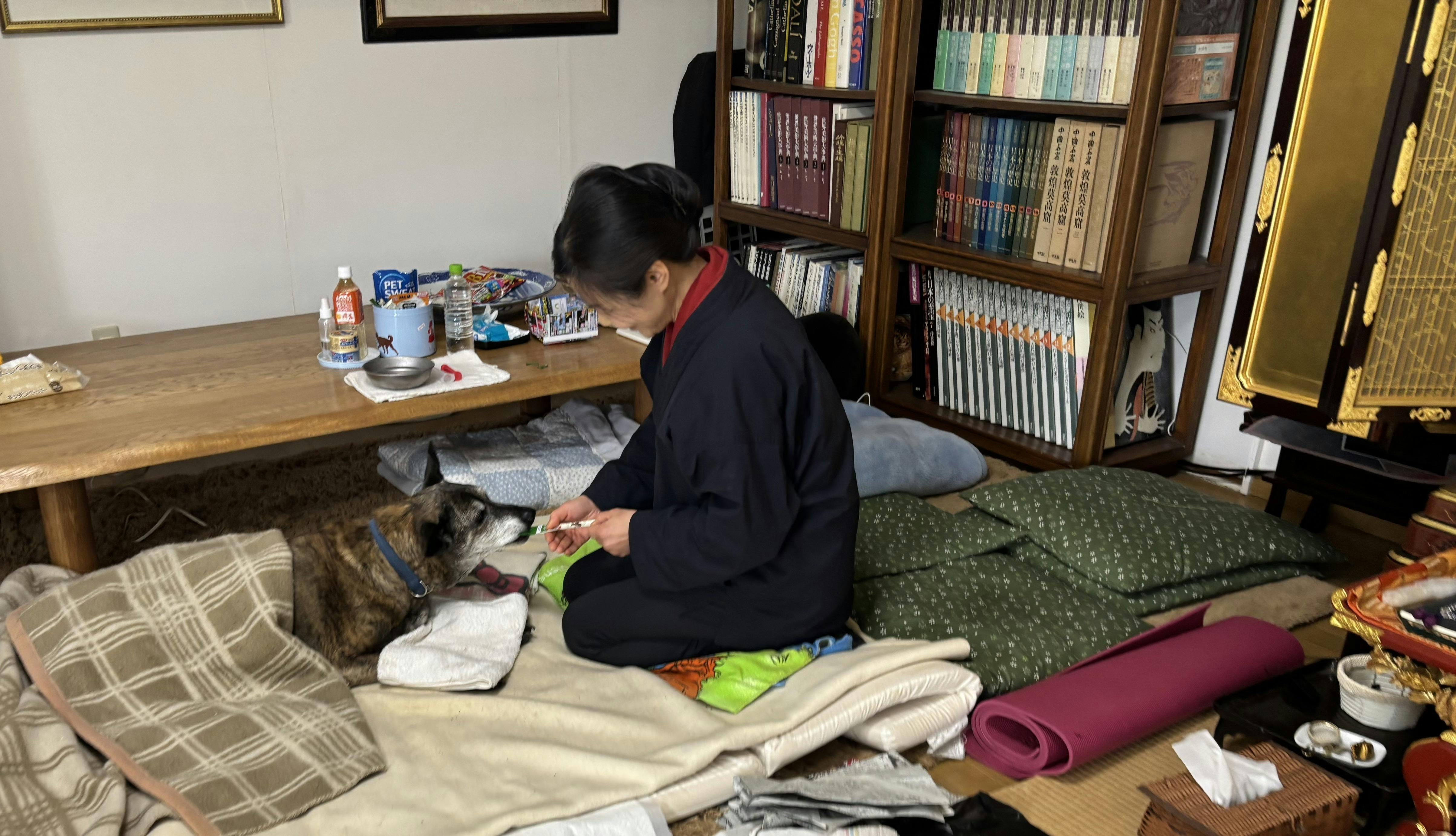 この日も正雲寺の看板犬、シャンテイちゃんが高齢のため病に伏せっていたところ、懸命に介護されていました。