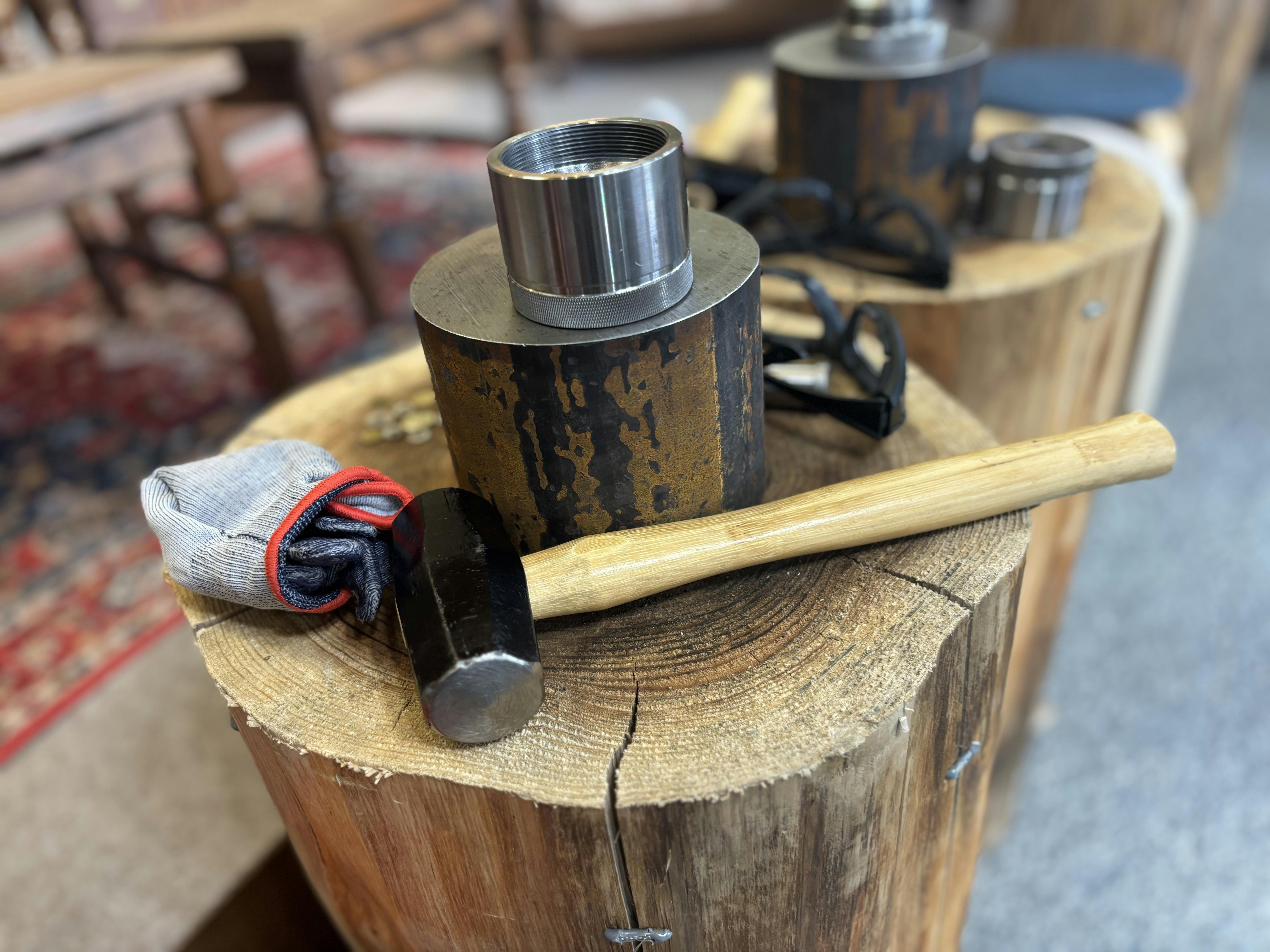 コインの中央部をくり抜いて立ち上げて指輪にしていくのだそう。