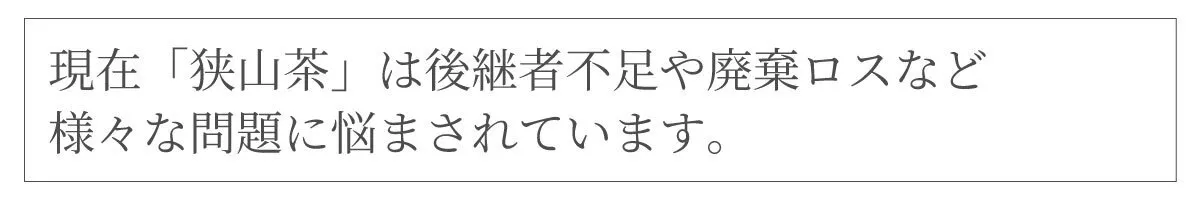 ■ 狭山茶を未来へつなぐ。今、伝統が失われようとしています。