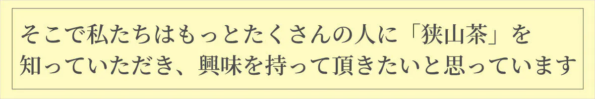 一人でも多くの方に関わっていただくことで、狭山茶の未来を守る力が大きくなると信じています。