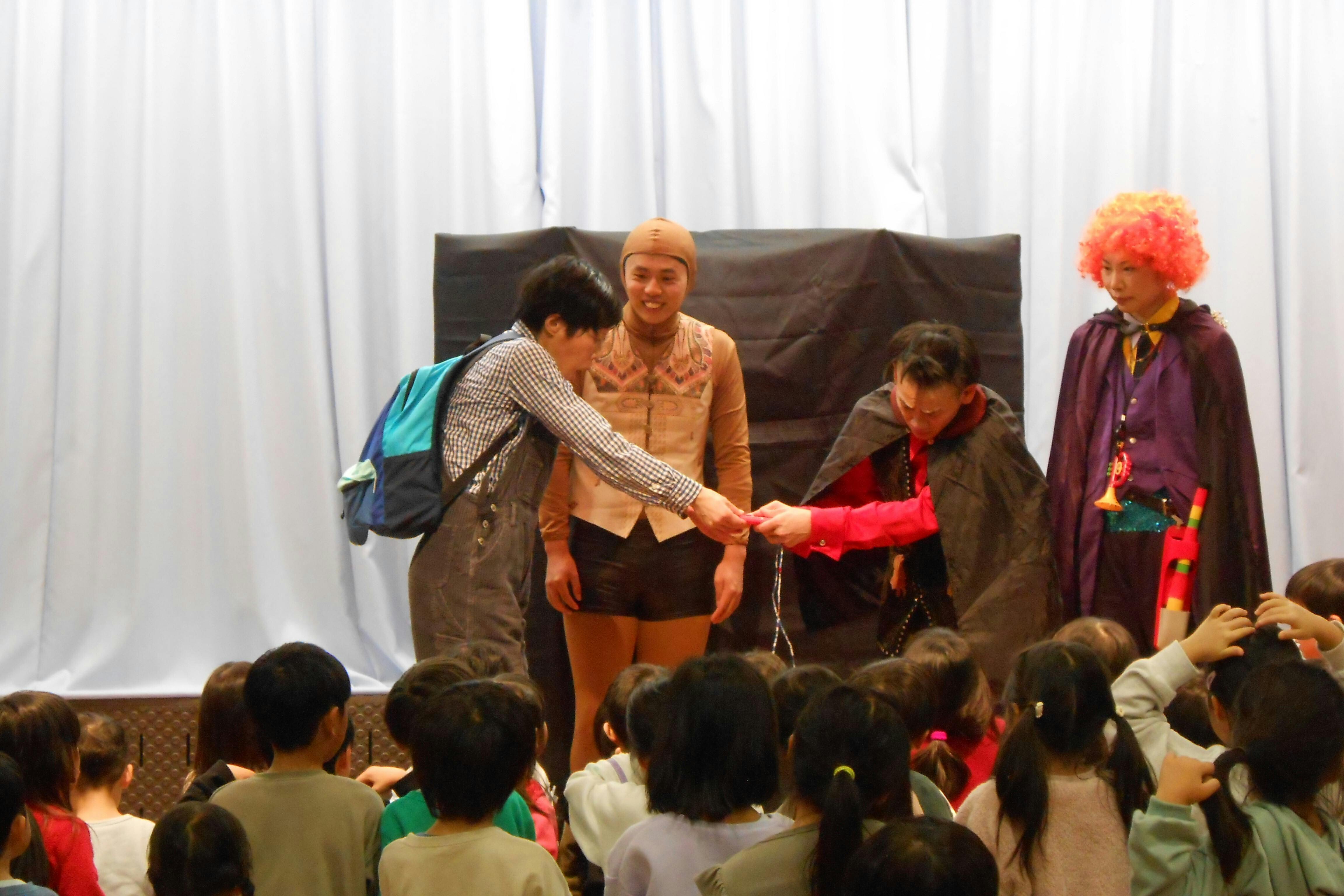 私たちの劇の特徴は、上演先の子ども達に、劇中に特別出演してもらうところです!