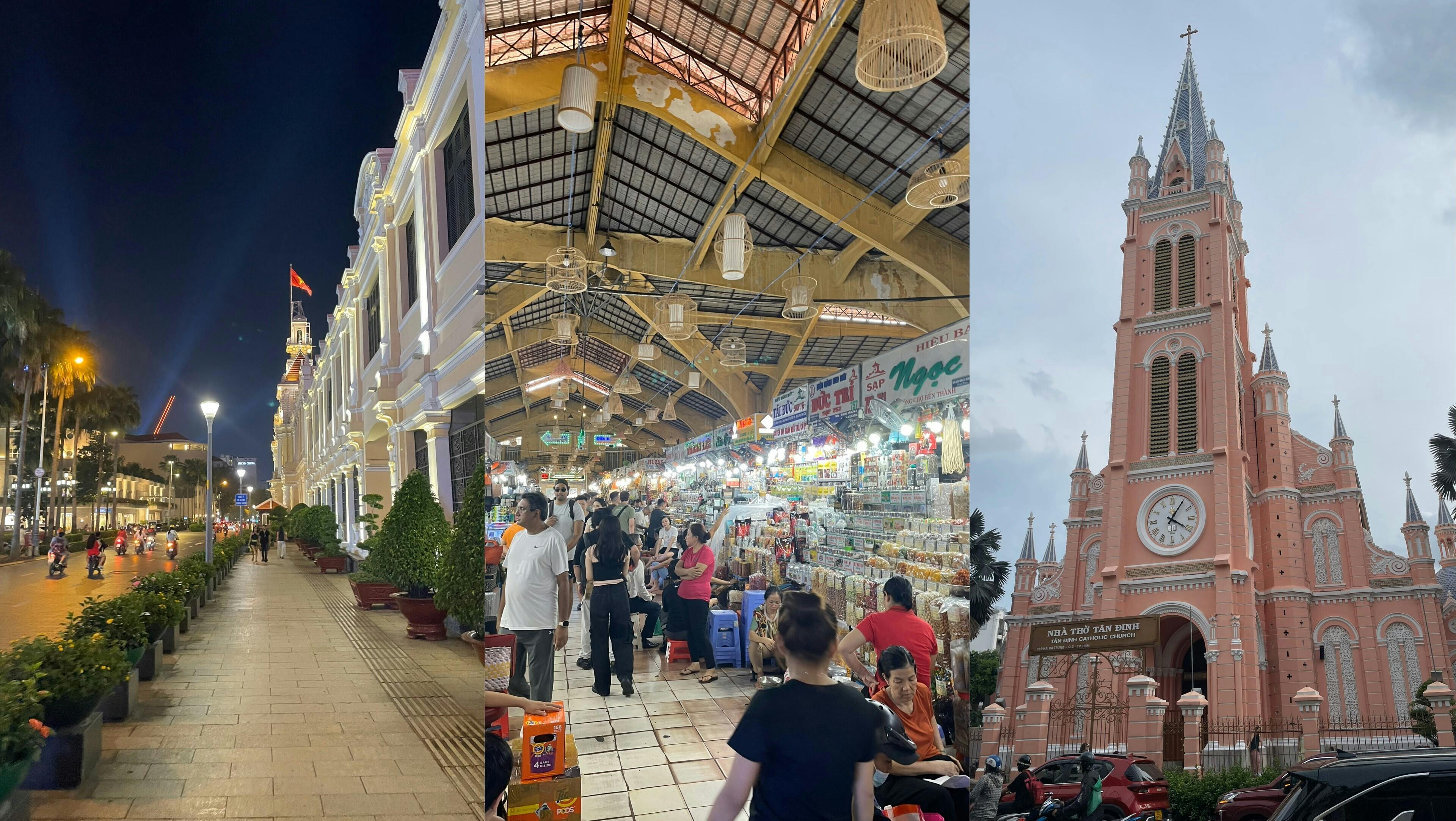左から、人民委員会庁舎・ベンタイン市場・タンディン教会