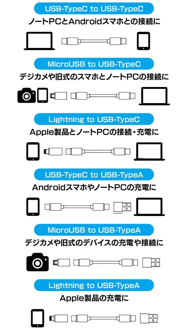 かさばるケーブルを複数持ち歩く手間も省けます。