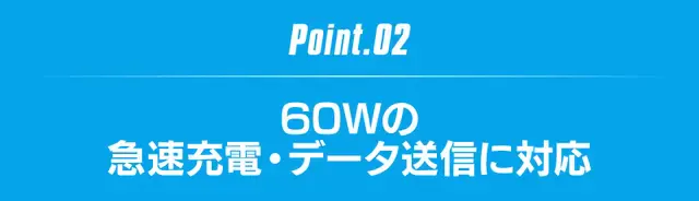 - ◎60Wの急速充電やデータ送信に対応。充電もデータ転送も短時間で行える