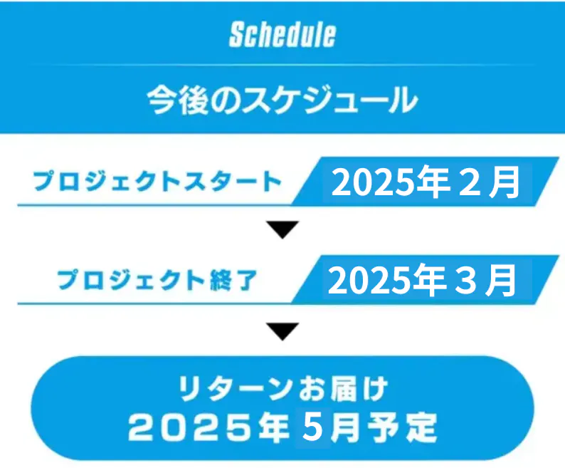 ※本文中に記載させていただいたスケジュールは、あくまでプロジェクト公開時点の予定です。プロジェクトの性質上、配送遅延のおそれがございます。原則として、配送遅延に伴うご支援のキャンセルはできません。