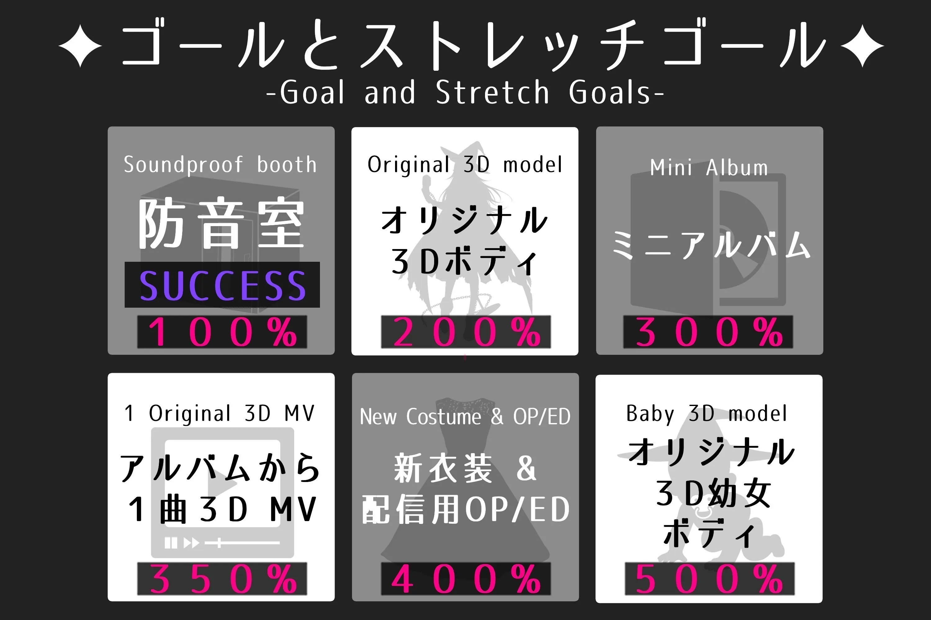 ※注意1:各ストレッチゴールは、それぞれの目標達成率(200%、300%など)に到達した場合にのみ制作されます。例えば、金額が200%未満の場合は「オリジナル3Dモデル」は制作されず、他のゴールも設定された%に届いた場合のみ制作が行われます。未達成の際に上乗せとなった金額は、今後の活動費として使用させていただきます。