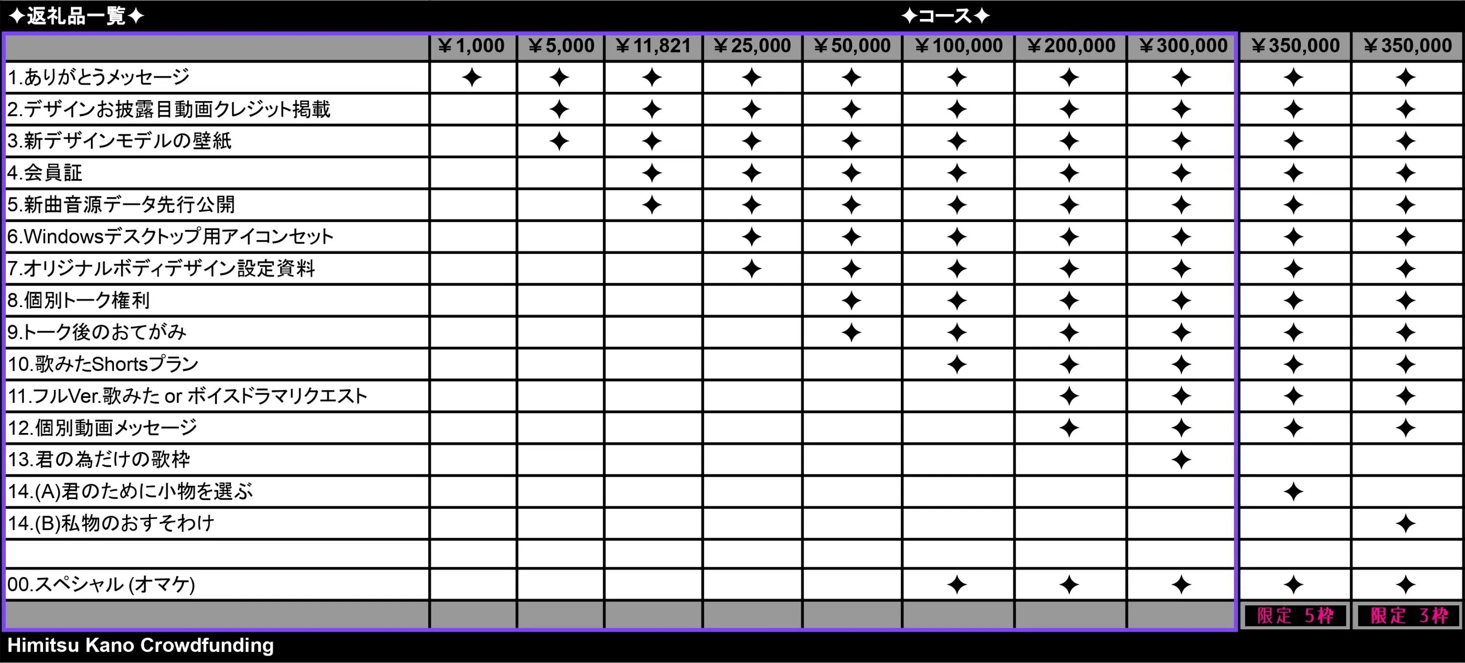 2025/02/24 00:00ご支援頂いた皆さんへ (バブたちへ)2ヶ月にわたるクラウドファンディング、本当にありがとうございました!初めての挑戦で、不安もたくさんあったけれど、こんなにも多くの方に応援していただけて、とても心強かったです。正直、環境的にも、状況的にも、決して万全とは言えない状態でのスタートでした。だからこそ、こんなにたくさんの方が支えてくれるなんて思ってもいなくて…。みんなの応援ひとつひとつが、本当に励みになりました。心から感謝しています。みんなの期待を胸に、これからの活動もより一層頑張っていきます!少しずつだけど、確実に前へ進んでいくので、これからも一緒に歩んでくれたら嬉しいです。そして本日、Campfireさんから連絡があり、事前に皆にもお伝えしていたと思うけど、クラファンのお振込みは来月末になるとのことでした。それに伴い、防音室の購入もその前後になりそうです。楽しみにしてくれているみんなには、もう少しだけお待たせしてしまうけれど、しっかり準備していくので待っていてね!物が届いたら、写真を撮りながらこちらの日誌で報告していくので、そちらもどうぞお楽しみに!少しずつだけど、支援してもらったことが形になっていくのを、みんなにも見てもらえたらと思っています。改めて、本当にありがとうございました。これからも叶秘蜜を、どうぞよろしくお願いします!To everyone (Babu-tahi) who supported me,Thank you so much for supporting my crowdfunding campaign for the past two months!This was my first time taking on something like this, and I wasn’t sure how things would turn out. But knowing that so many of you were cheering me on gave me so much strength.To be honest, I had a lot of challenges, and I didn’t expect to receive this much support. That’s why I’m truly grateful to each and every one of you. Your encouragement meant everything to me, and I can’t thank you enough.With your support pushing me forward, I’ll keep doing my best! There’s still a long way to go, but I’ll keep moving forward step by step. I’d love for you to continue this journey with me!Also, I got an update from Campfire today—the funds will likely be transferred at the end of next month. That means I’ll be able to buy the soundproof booth around that time too. I know some of you have been looking forward to it, so thank you for your patience! I’ll make sure to set everything up properly. Once everything arrives, I’ll post updates with pictures so you can see the progress! I hope you’ll enjoy watching everything come together.Once again, thank you so much.I truly appreciate your support, and I hope we can keep going forward together!2025.2.23叶 秘蜜 (Himitsu Kano) もっと見る✦Special Gift for my Supporters✦