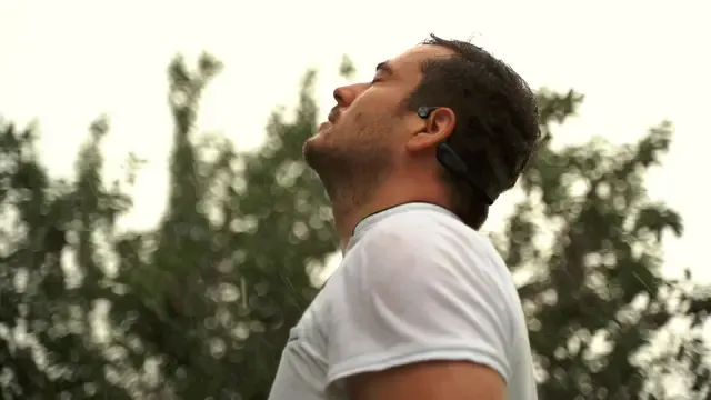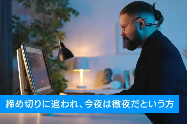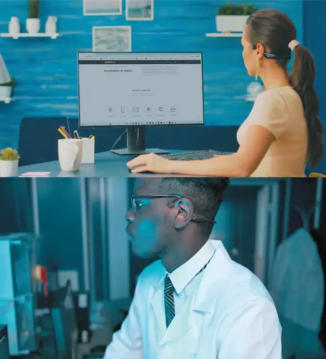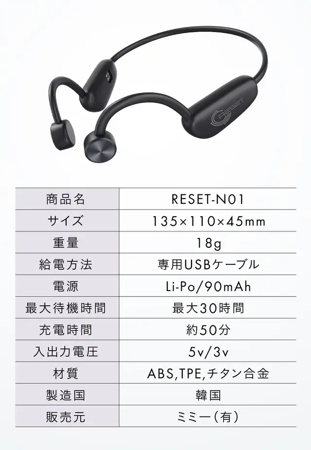 RESETは両耳掛けタイプですので、違和感なく長時間の使用が可能です。チタン製のブリッジは適度な圧力で頭部にフィットします。