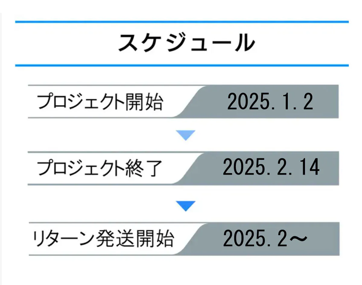 ●引渡し時期: 各リターン詳細に記載の発送予定月を引き渡し時期とします。但し、開発・生産状況によって遅れが生じる場合がありますのでその際は当プロジェクトページ内の「活動報告」または購入者へのメール等で連絡します。