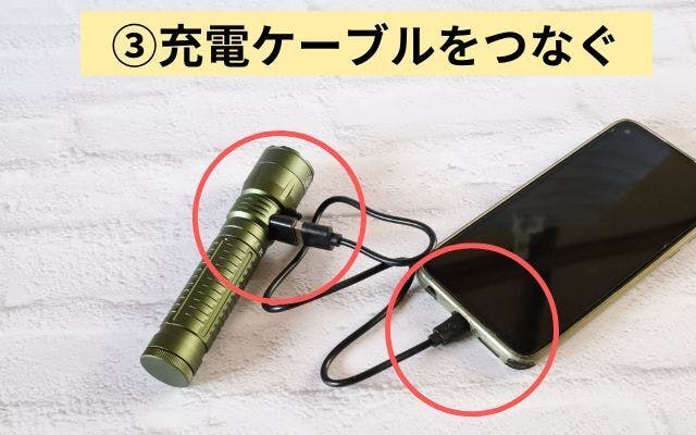すると懐中電灯から充電したい機器へ充電がはじまります。