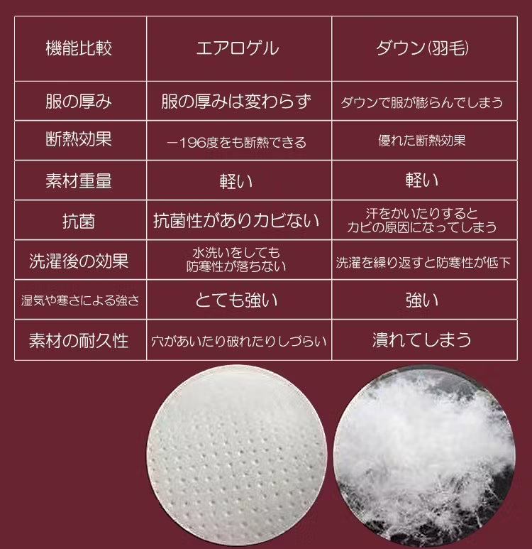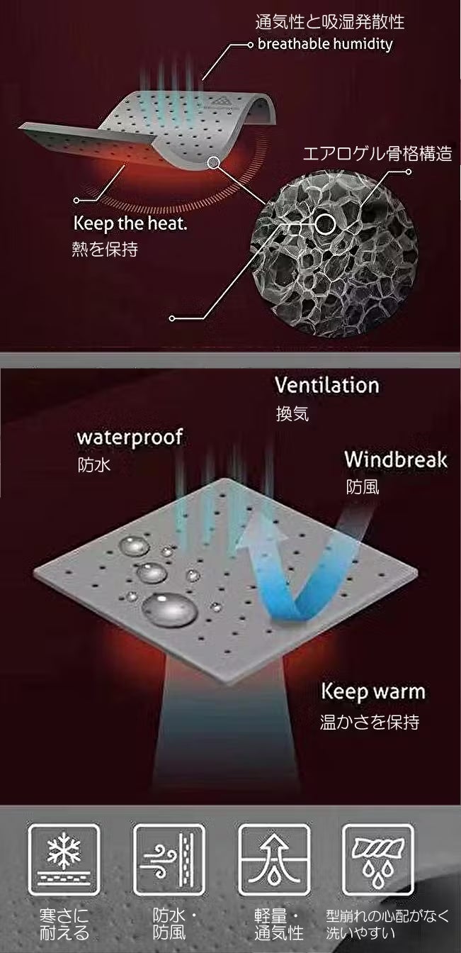 エアロゲル素材開発:USA 企画:Japan 生産:China