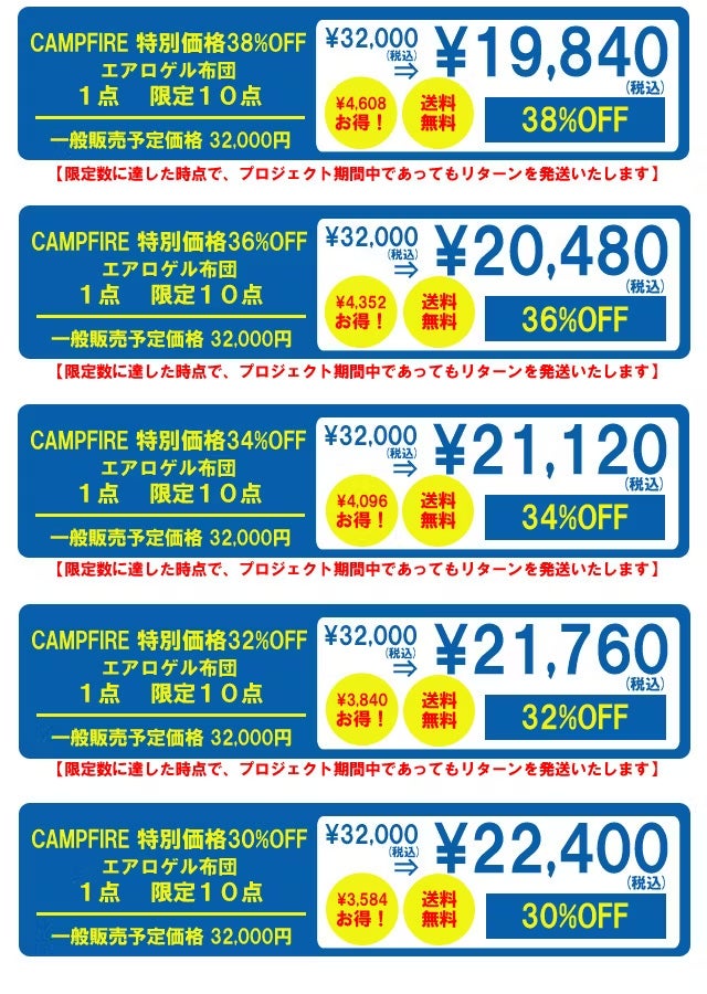 ※想定を上回る皆様からご支援を頂き、量産体制を更に充実させることができた場合、一般販売価格が予定価格を下回る可能性がございます。