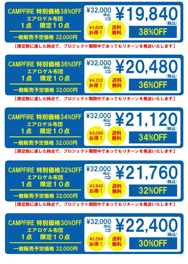 ※想定を上回る皆様からご支援を頂き、量産体制を更に充実させることができた場合、一般販売価格が予定価格を下回る可能性がございます。