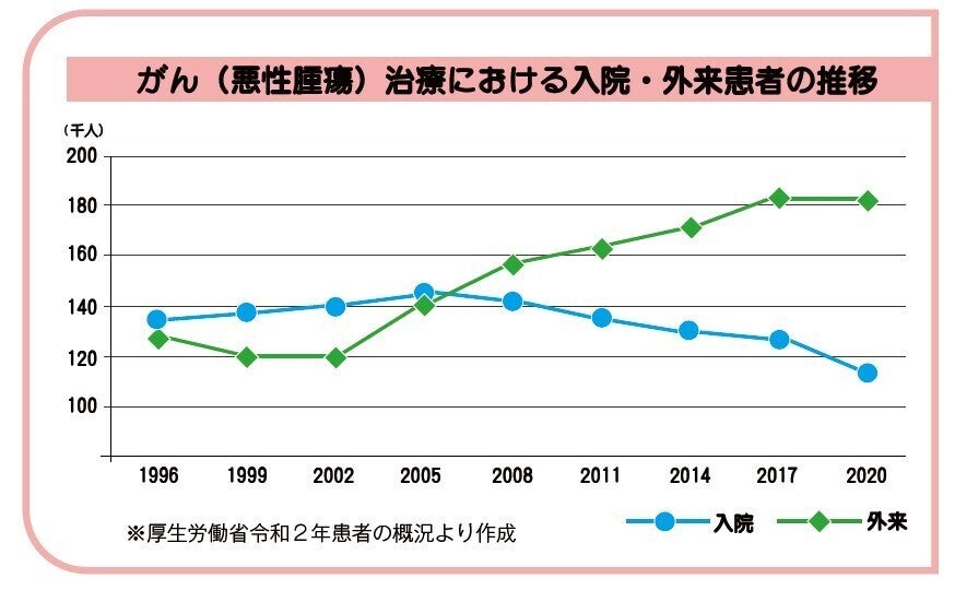 ◆かつてがんは入院する病気でした。しかし、現在、がんの療養は入院から通院へと大きく変わりました。