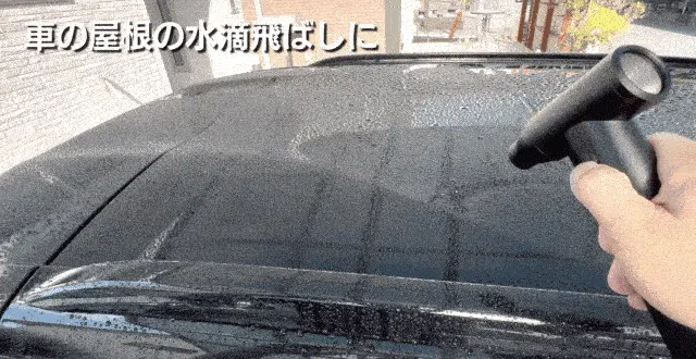 車に装備して車内清掃や洗車の時の水滴飛ばしに。洗車時のタオルで拭きにくい屋根の部分や狭い部分の水滴を取るのに大変便利、特にパーツの隙間の水滴はそのままにしておくと錆びや水垢の原因になるので「AIRDAST MAX」で水滴を吹き飛ばしていただくと車も末永く綺麗に保てます。