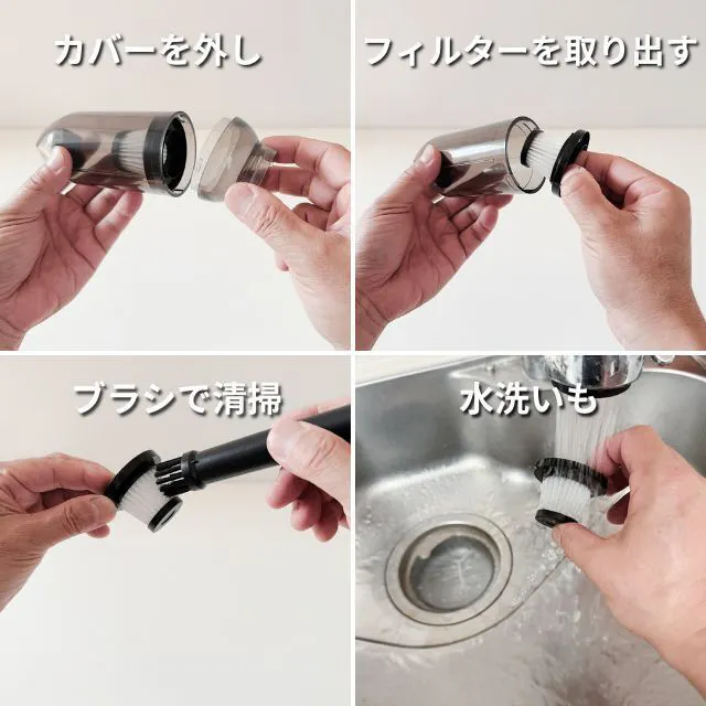 フィルターは何度も水洗いすると消耗いたしますので普段は付属のブラシヘッドノズルでゴミを除去してたまに水洗いをしていただけたら長持ちします。