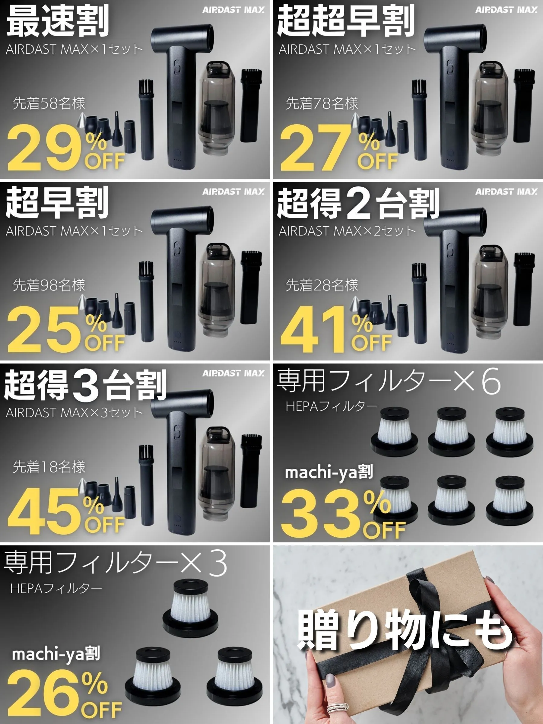 今回、「AIRDAST MAX」をmachi-yaだけの特別価格にてご提供させて頂きます。「AIRDAST MAX」は2WAYハイパワーエアダスターで強力な送風と吸引力を持っております。またコンパクトで軽量なのでどこにでも携帯出来ます。この「AIRDAST MAX」が一つあれば日常生活のあらゆる場所で使うことができ、あなたの生活をもっと快適に出来ることは間違いありません。自信をもってお勧めします。実用性が有り、洗車やアウトドアにも役に立つ「AIRDAST MAX」を皆様にお届け出来るのを楽しみにしております。是非、あなたの相棒として側に置いていただけたら幸いです。精一杯プロジェクトに取り組んで参ります。皆様からの応援を心よりお待ちしております。