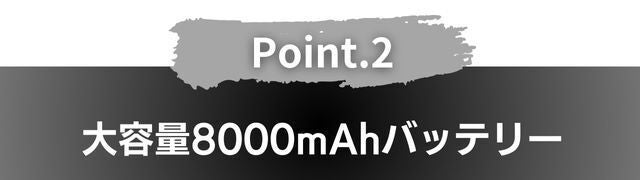 大容量8000mAhバッテリー搭載で使用時間長持ち