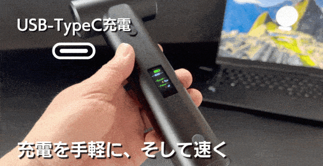 USB-TypeC充電式で外出先やどこでも充電できます。