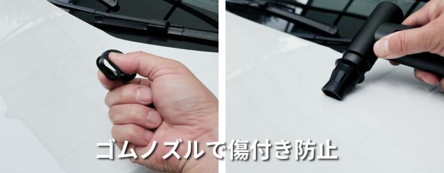 ゴムノズルは物に当たってもキズが付きませんので車や精密機械などの清掃に役立ちます。