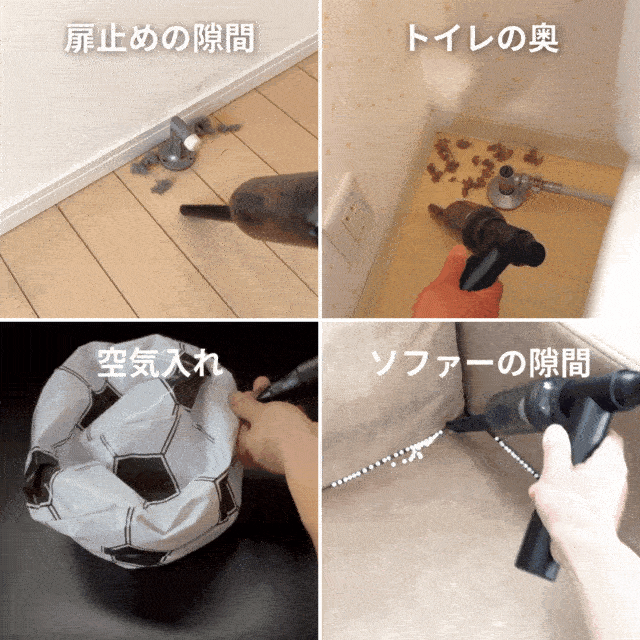 専用ノズルで今まで綺麗に出来なかった細かい場所の清掃や浮き輪に空気を入れたり使い方は多種多様。