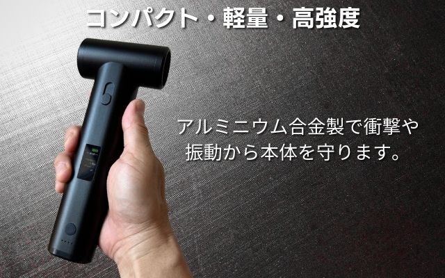 本体はアルミニウム合金製、一般的なプラスチック製と比べても耐久性があり、衝撃や振動から本体を守ります。