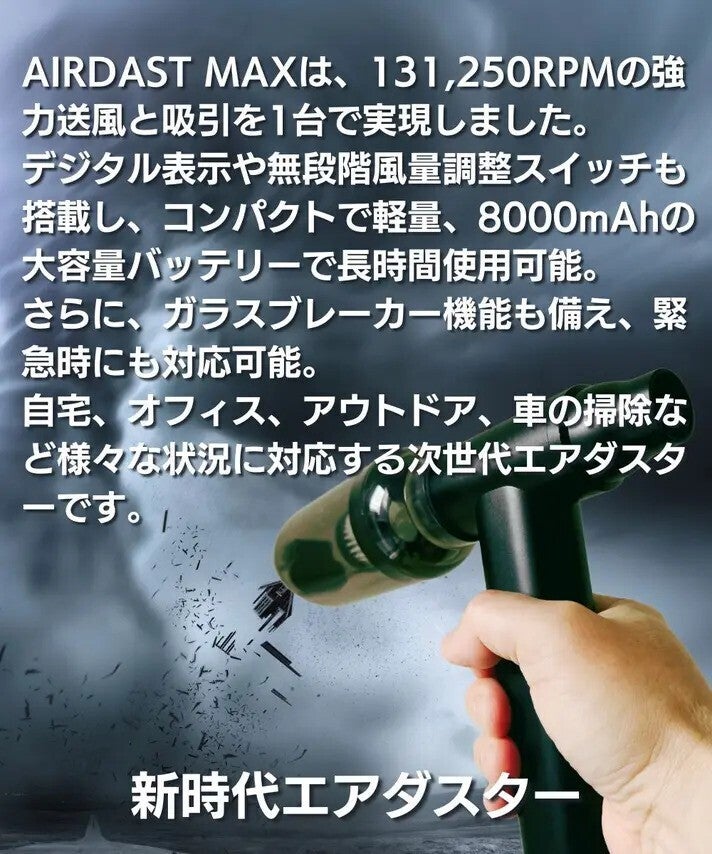 エアガンに掃除機を搭載した高性能ハイパワーエアダスター「AIRDAST MAX」登場!