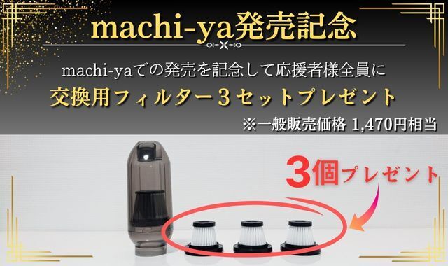 machi-ya発売記念!交換用専用フィルター3セットプレゼント!