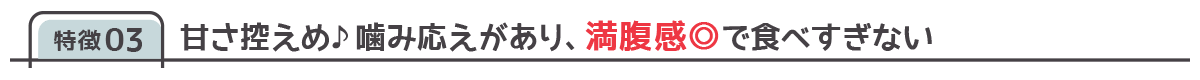 しっかりとした噛み応えがあるため、ゆっくり食べることで満腹中枢が刺激され、食べ過ぎを防止。