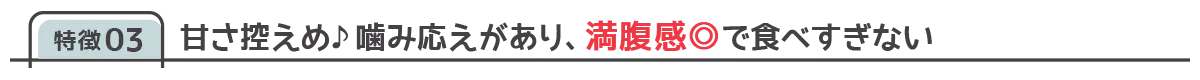 しっかりとした噛み応えがあるため、ゆっくり食べることで満腹中枢が刺激され、食べ過ぎを防止。