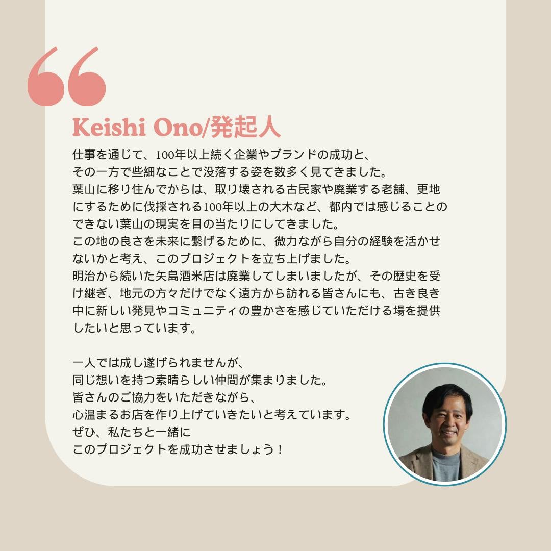 リターンを通じて、“HAYAMA SHINNASE CELLAR“を体験していただき、同時にコミュニティの一員として盛り上げていただきたいです!