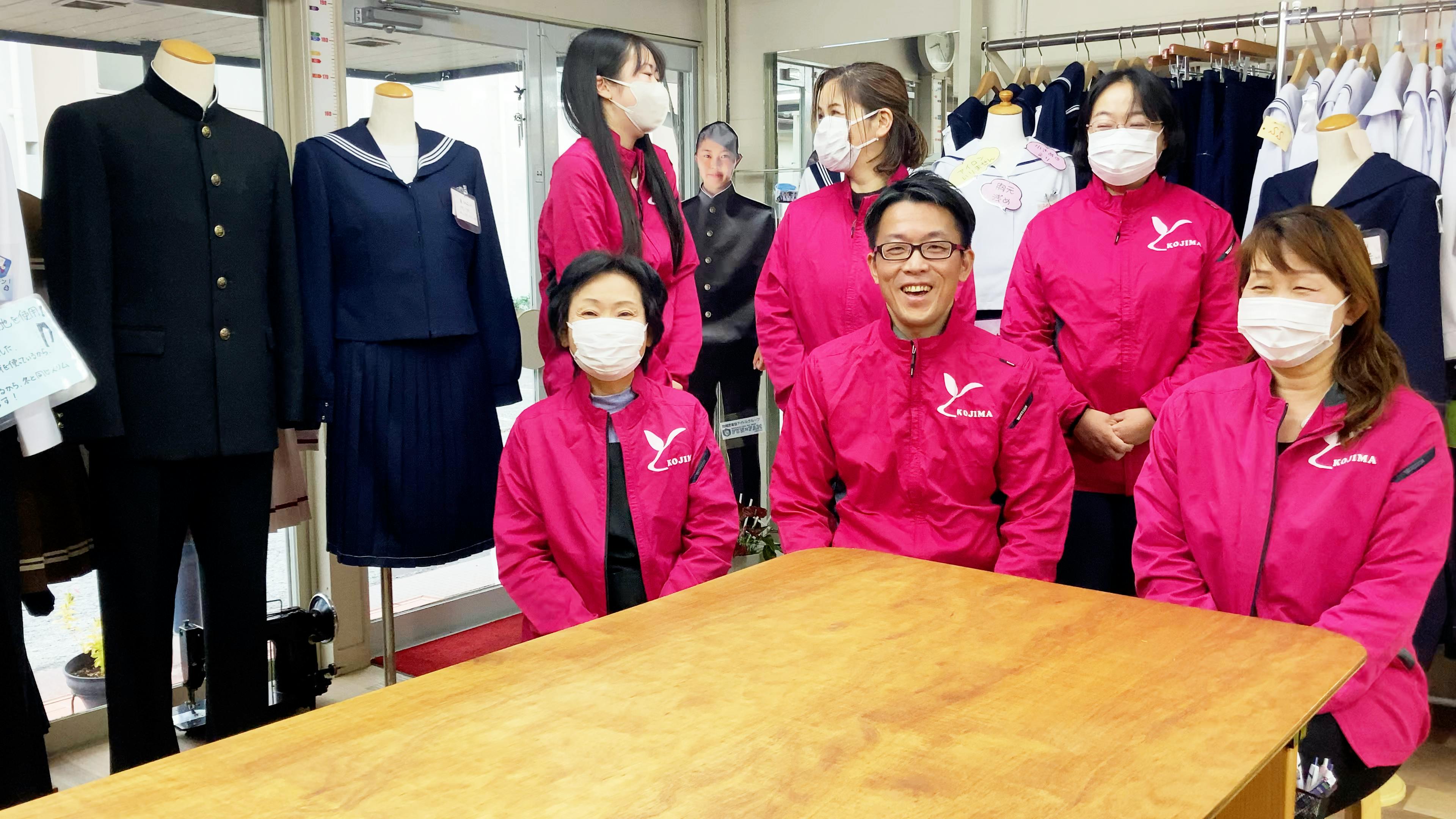 私は株式会社エイコーコジマの代表、小島吉勝と申します。私は、この和歌山の地で明治34年から続く伝統ある会社の5代目として、日々服づくりに励んでいます。私たちはもともと着物の反物製造からスタートし、その後、軍服の製造を経て学生服縫製に事業を移行しました。以来、学生服を中心とした服作りを通じて成長を続けてまいりました。私が代表に就任して7年、従業員と共に「より良いものを届けたい」という想いで歩んできました。