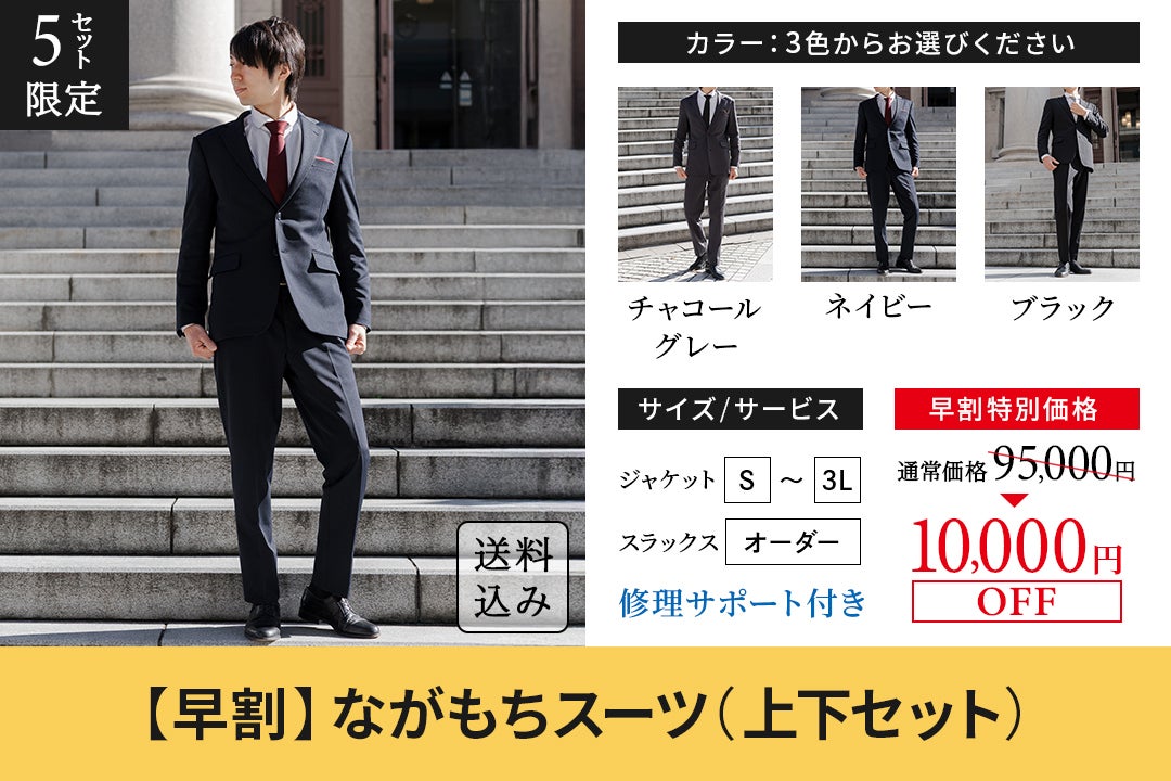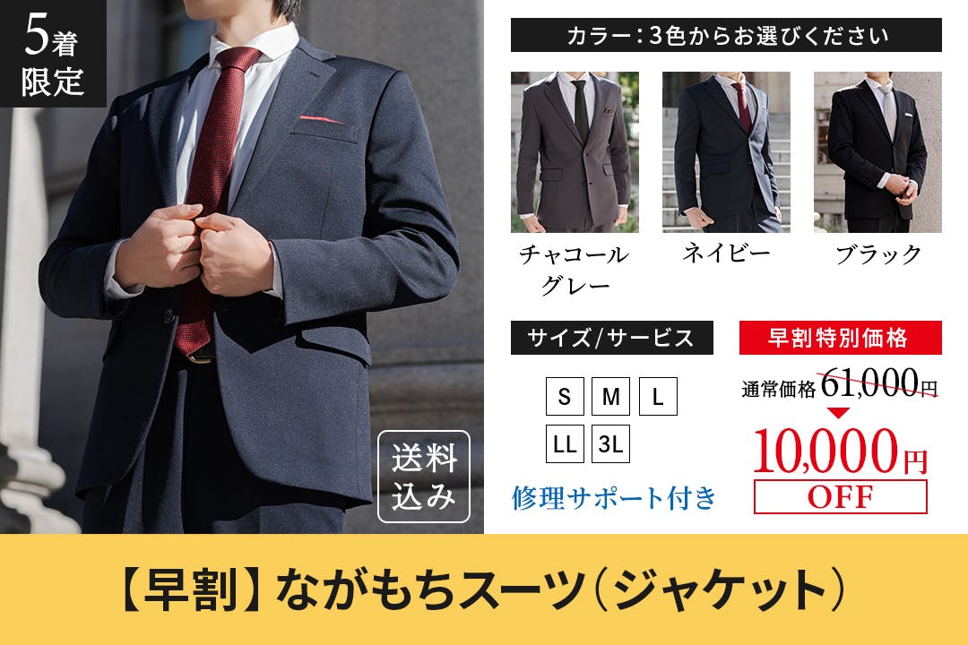 ファッション性だけでなく着心地や使い勝手に妥協しない、こだわりの「ながもちスーツ」の上下セットを1セットお届けいたします。 クラウドファンディング限定の早割価格で10,000円もお得になっております!