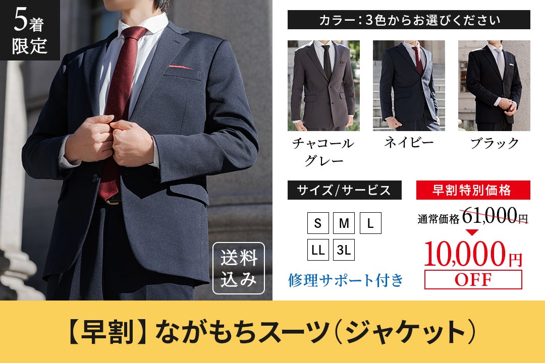 ファッション性だけでなく着心地や使い勝手に妥協しない、こだわりの「ながもちスーツ」のジャケットを1着お届けいたします。 クラウドファンディング限定の早割価格で10,000円お得になっております!