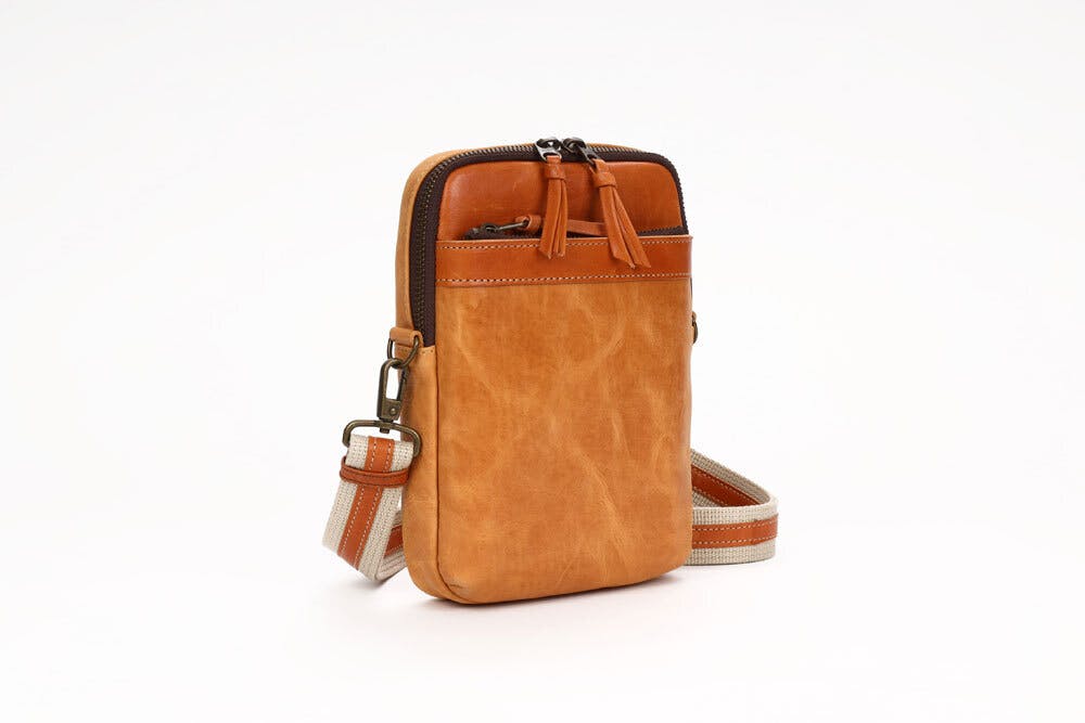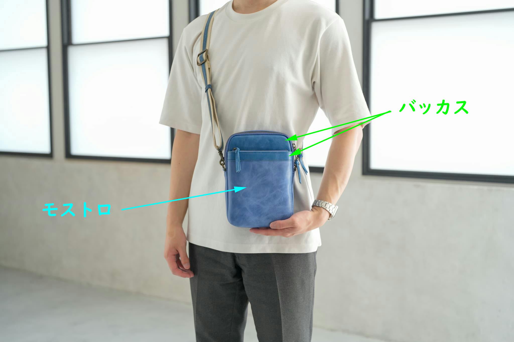 ▷経年変化好きにはたまらない!このポシェットは経年変化を楽しめる2種類の牛革を使っています